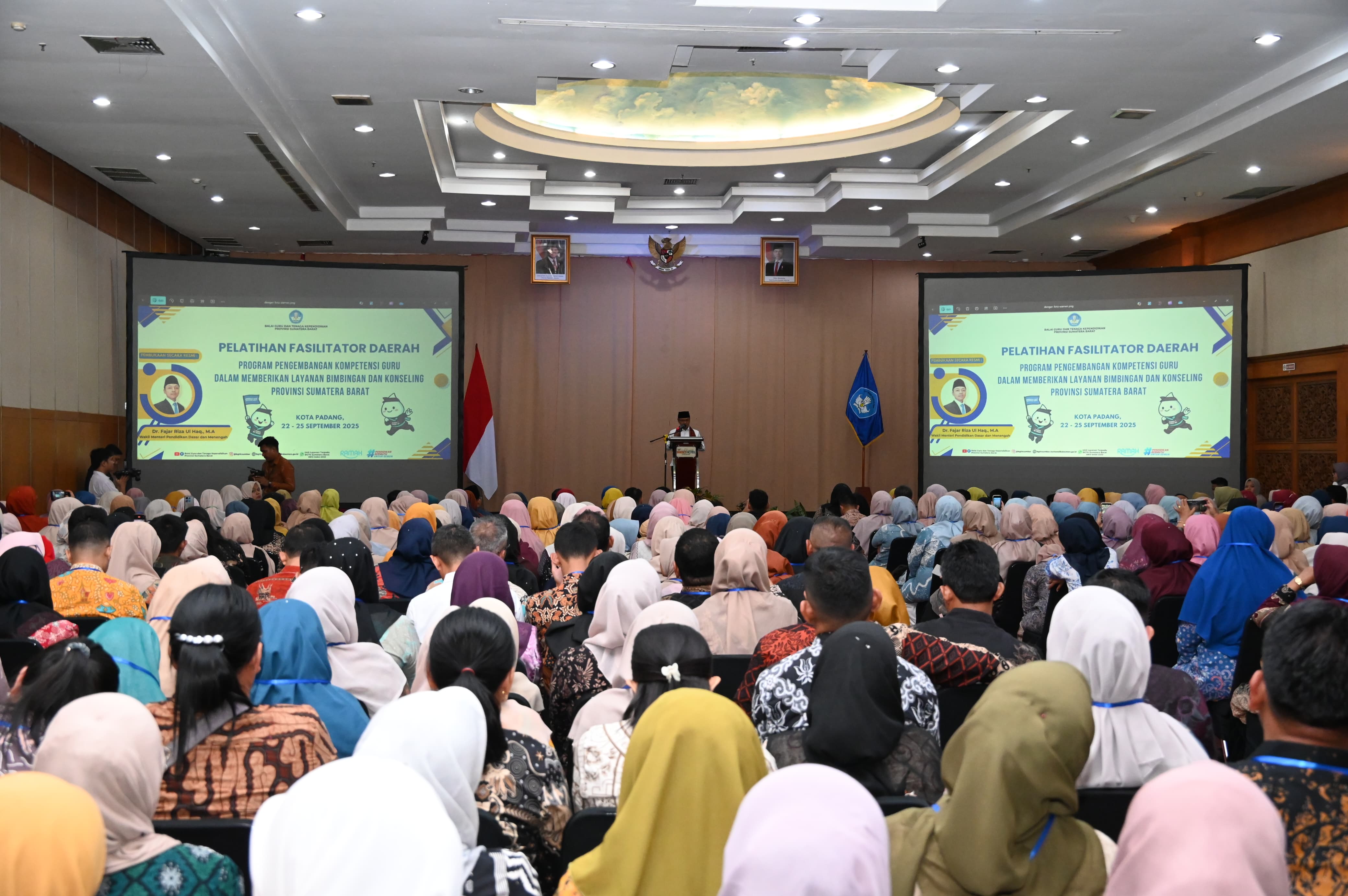 Padang, 22 September 2025 – Wakil Menteri Pendidikan Dasar dan Menengah (Wamen), Fajar Riza Ul Haq, membuka kegiatan Pelatihan Fasilitator Daerah: Program Pengembangan Kompetensi Guru dalam Memberikan Layanan Bimbingan dan Konseling di Padang, Sumatra Barat. Kegiatan yang digelar oleh Balai Guru dan Tenaga Kependidikan (BGTK) Provinsi Sumatra Barat ini diikuti oleh 530 calon fasilitator daerah dari 19 kabupaten/kota.